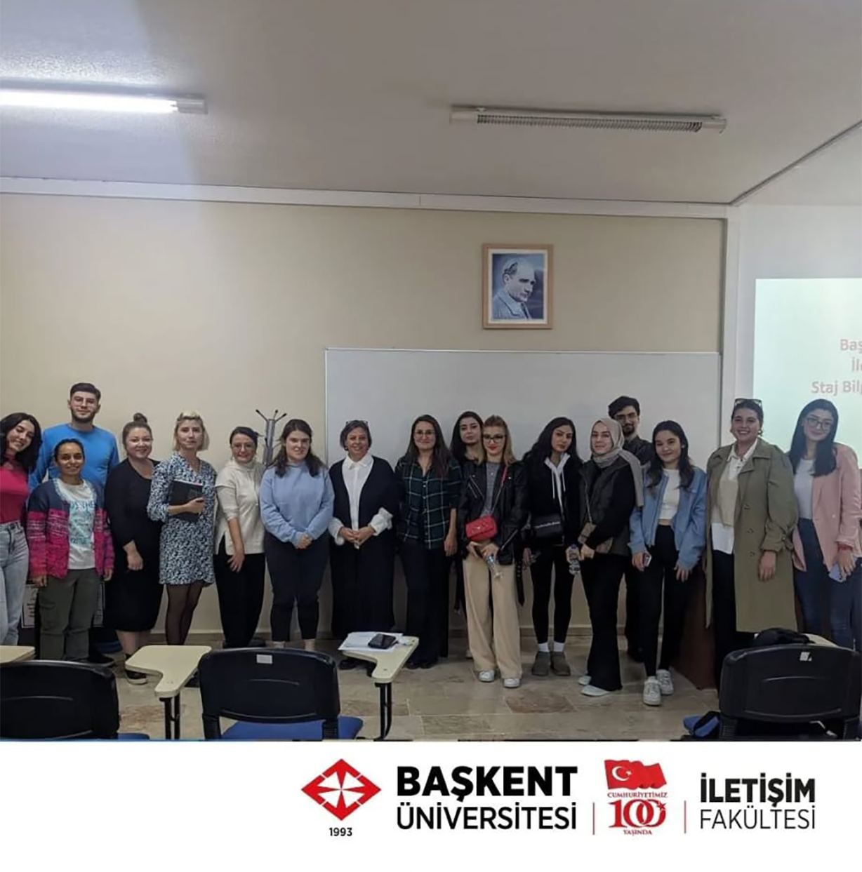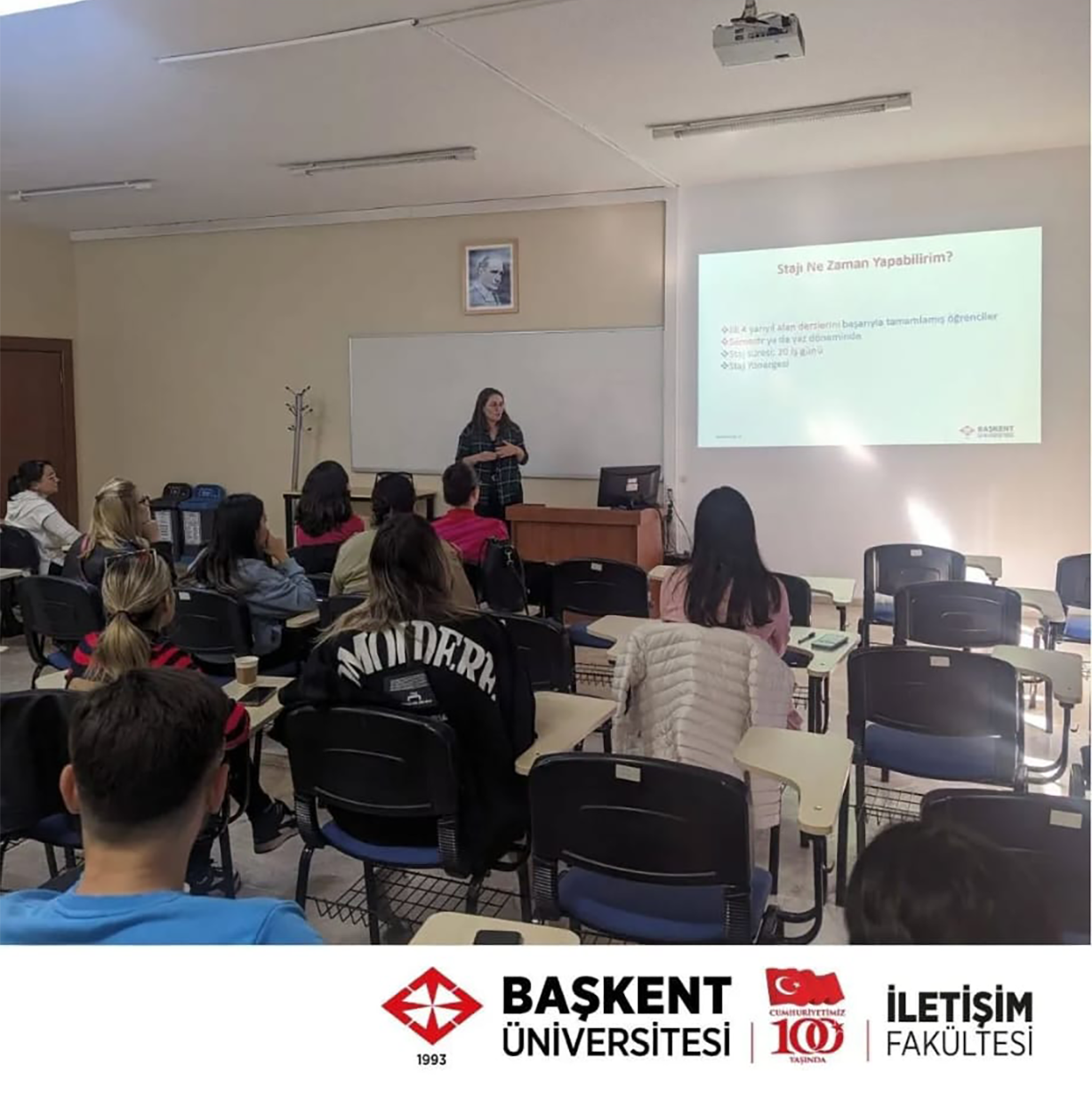 İletişim Fakültesi’nin beşinci Staj Bilgilendirme Toplantısı, 9 Kasım 2023 tarihinde saat 12.00’da C01 numaralı derslikte gerçekleştirilmiştir. İletişim Fakültesi Staj Koordinatörü Dr. Öğr. Üyesi Ebru Akçay’ın staj başvuruları ve staj süreci hakkında bilgilendirme yaptığı toplantı, öğrencilerin sorularının yanıtlanmasıyla sona ermiştir. Toplantıya, İletişim Fakültesi Dekanı, Bölüm Staj Sorumluları, Fakültemiz Öğretim Üyeleri ve öğrencileri katılım sağlamıştır.